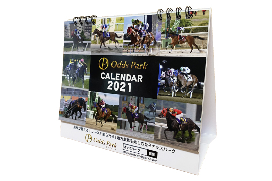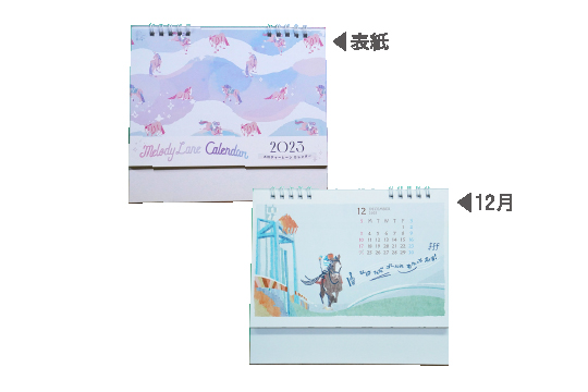 タイキシャトルやナイスネイチャなど、GⅠレースで活躍したフォスターホース12頭で構成された卓上カレンダー。ひと月2面、実用性にも優れたデザインです。