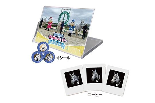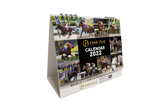 タイキシャトルやナイスネイチャなど、GⅠレースで活躍したフォスターホース12頭で構成された卓上カレンダー。ひと月2面、実用性にも優れたデザインです。